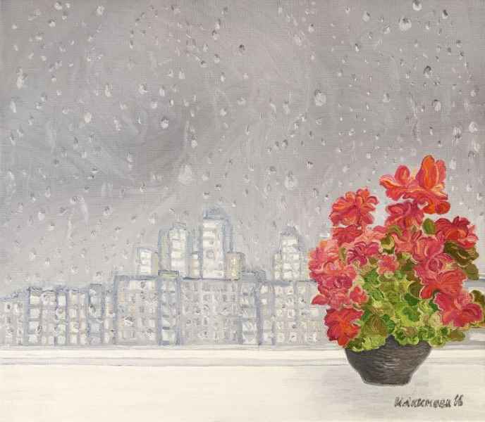 The world of unbroken windows is different. Its coziness cannot be disturbed by the vase of flowers that was knocked down from a window sill by a gust of wind which pushed the window to open (“Gust of wind”). Melancholy of rain outside the window is dissolved by the bright colors of the flower (“Rain”). The warmth of an open window with a children's toy on a windowsill and washed children's clothes on the ropes in front of it, dominates even the shabby house walls covered with graffiti (“Among the graffiti”). The windows of our city, beautiful in their diversity, look at us with their open eyes ("Windows of Kiev"). The world of unbroken windows is full of warmth, hopes, desires and confidence.
